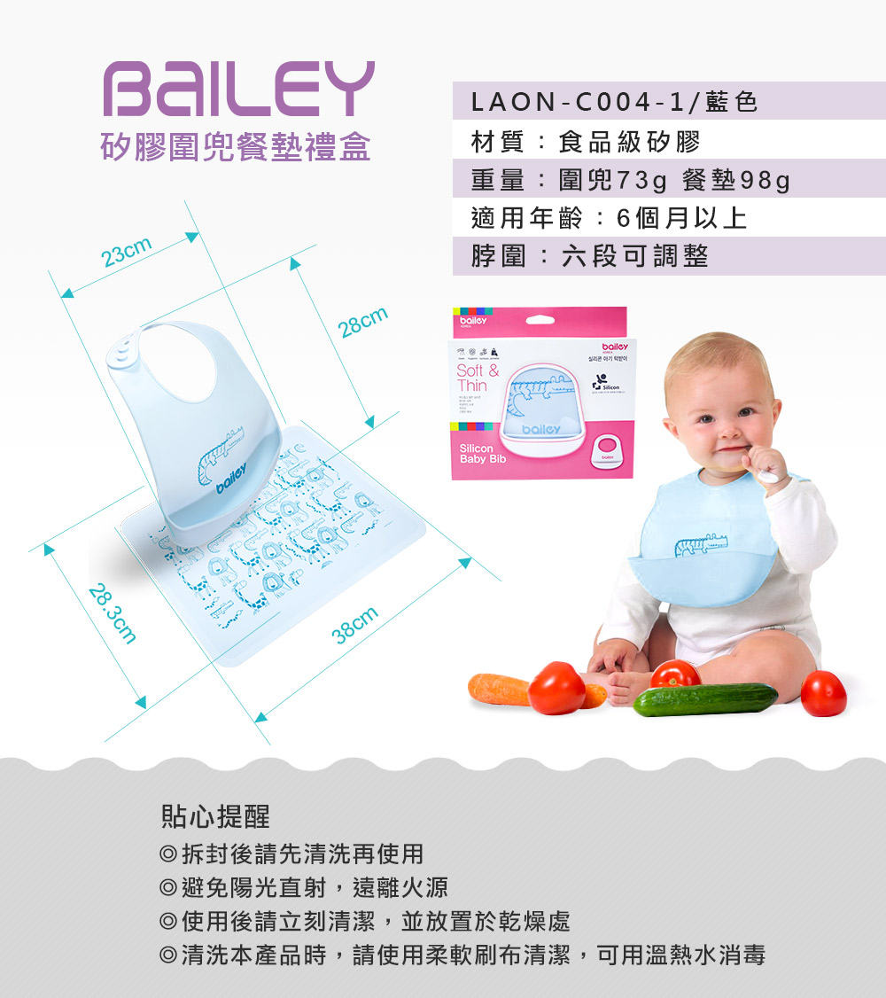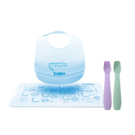 【2angels】矽膠餵食湯匙 + BAILEY圍兜餐墊禮盒(藍)