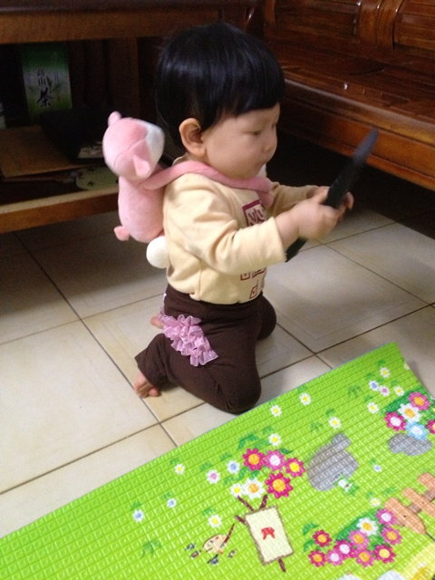 然後不一回又把娃娃抱起來了