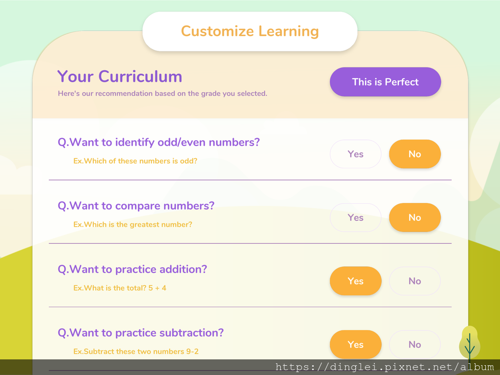 (像是需要練習分辨奇數複數嗎?需要練習加法嗎?需要練習數字比大小嗎?....等。)