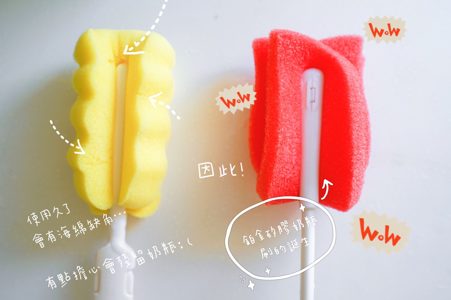 《鉑金矽膠奶瓶刷》堪稱比海綿刷壽命長,又可以彌補矽膠刷不能貼合奶瓶刷洗的問題~所以雖說普通海綿刷又便宜又易取得,為了小朋友的健康,我決定還是不要省這小$囉~