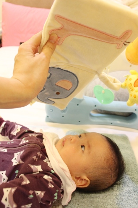 魔鬼氈的設計可以掛在推車上,平常也可以掛在搖椅或嬰兒床上~